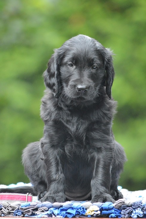 Otcem štěňátek bude elegantní a pracovití Compendio Eyran, kterému doma říkají Sako. Sako je velmi přátelský a mazlivý flatík, už osmi letý, ale stále zdravý a plný síly, při práci nadšený a ochotný udělat pro svého pána vše, doma ale umí odpočívat a být klidný. Je to veliký pracant se spoustou titulů, což je jedna z věcí, které jsem pro náš chov hledala a kterou jsem u našich štěňátek chtěla podpořit. Děkuji také jeho majitelům Monice a Markovi, že dovolili spojení s naší Jollou.